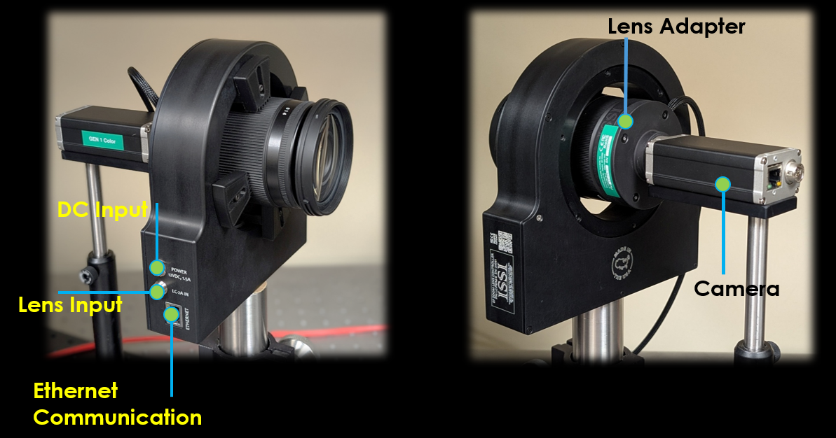 The EF Zoom Lens Controller is a complete EF lens control system designed to operate a limited number of EF zoom lenses, giving full control of the zoom, focus and aperture of a lens. The controller is designed to operate select Canon® EF and L series IS auto focus lenses as well as select Sigma® EF lenses. Commands for the controller can be written into existing software for both Windows and Linux via API commands. The controller pairs with a LC-2A lens adapter to connect to a variety of camera mounts. The device is operated via a graphical user interface and allows for preset positions of the lens to be saved and then recalled at any time. It can also be integrated into existing software via TCP/IP API commands in Windows and Linux operating systems.